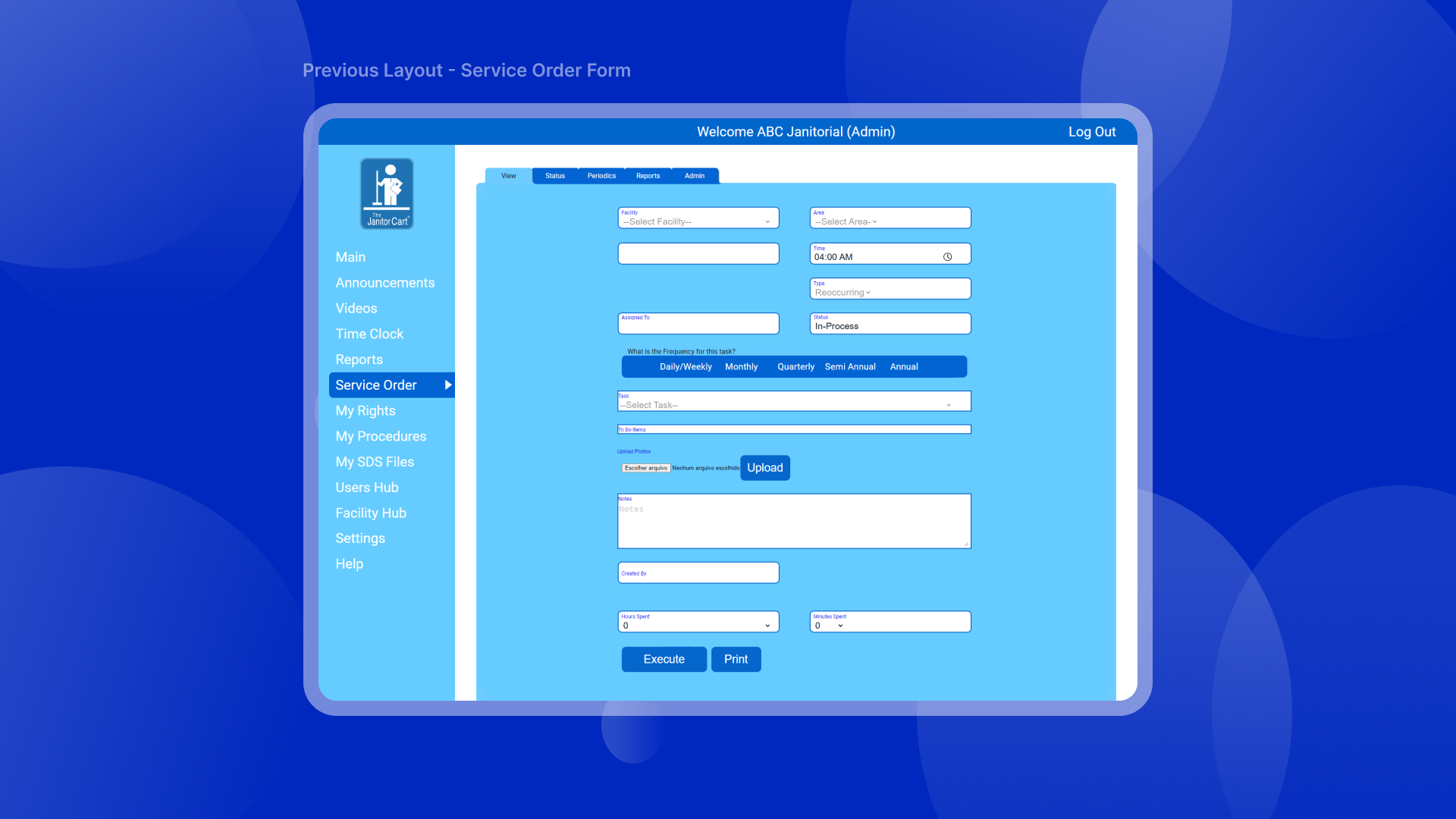 The Janitor Cart is an operations management platform built for cleaning and maintenance crews who need efficiency, clarity, and speed in their daily workflows.